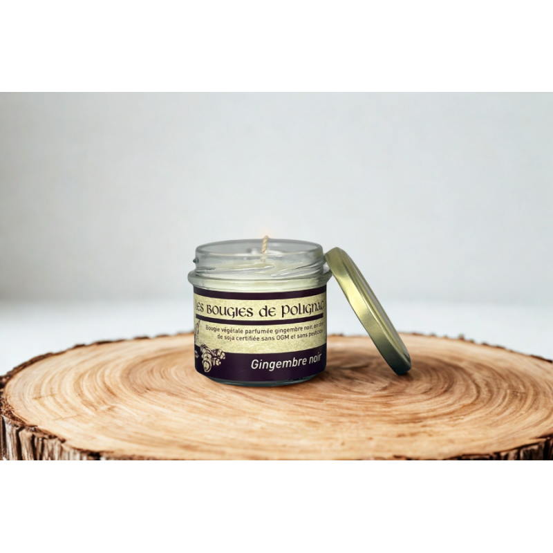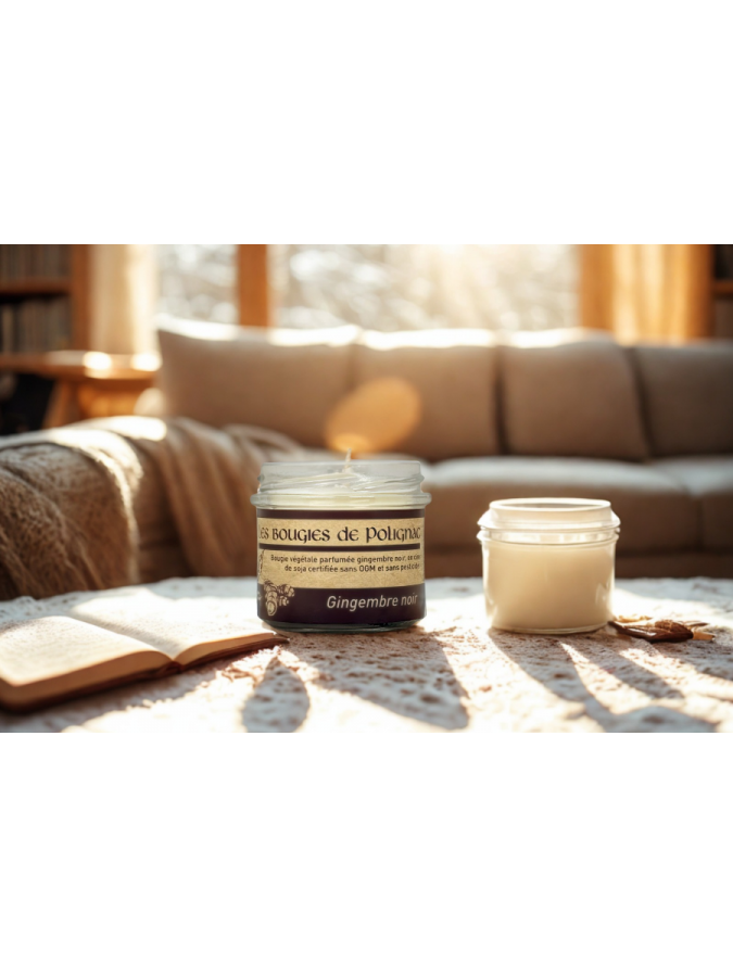 Une bougie végétale élégante au parfum épicé et raffiné de gingembre noir, pour une atmosphère chaleureuse et envoûtante.