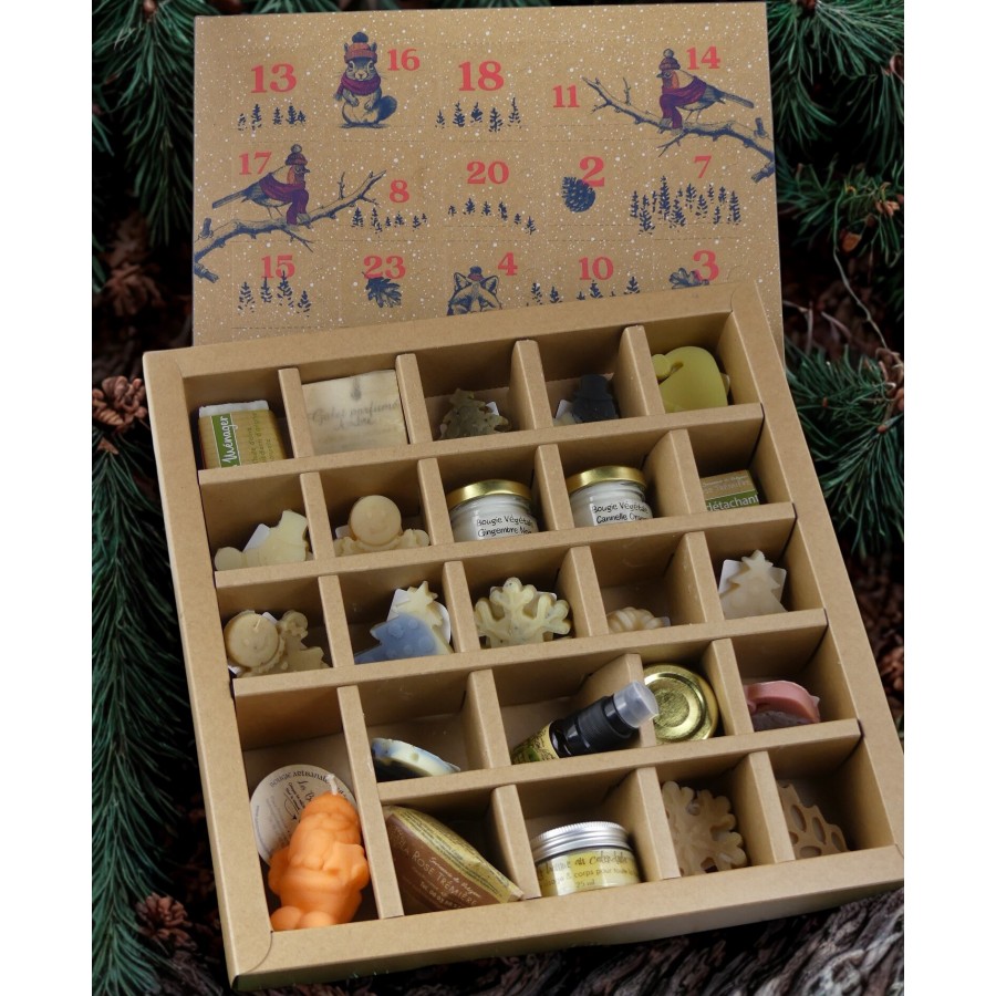 Découvrez notre calendrier de l'avent garni de produits artisanaux, sains et naturels.